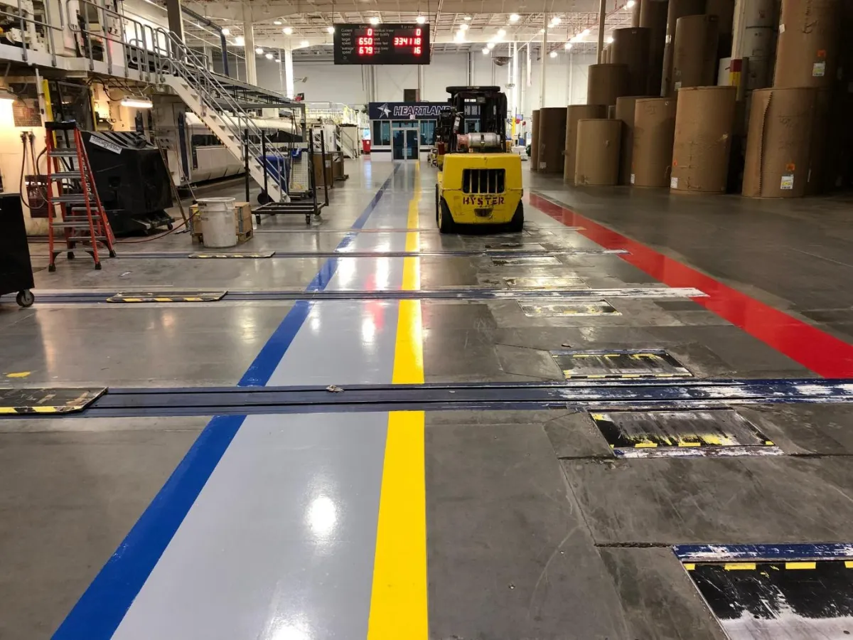 Warehouse safety lines & slip-resistant treatments